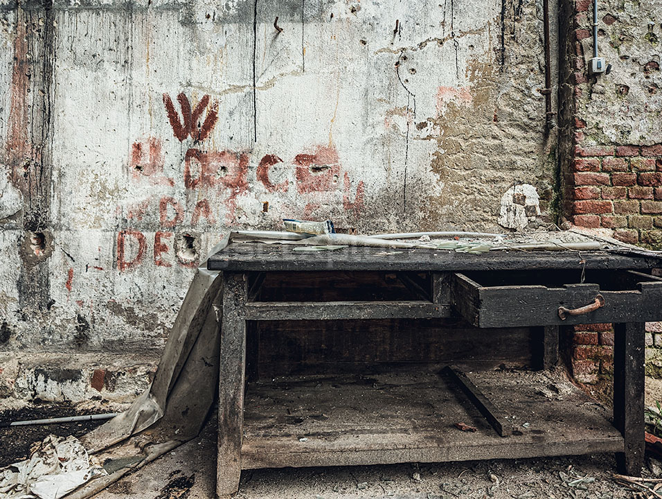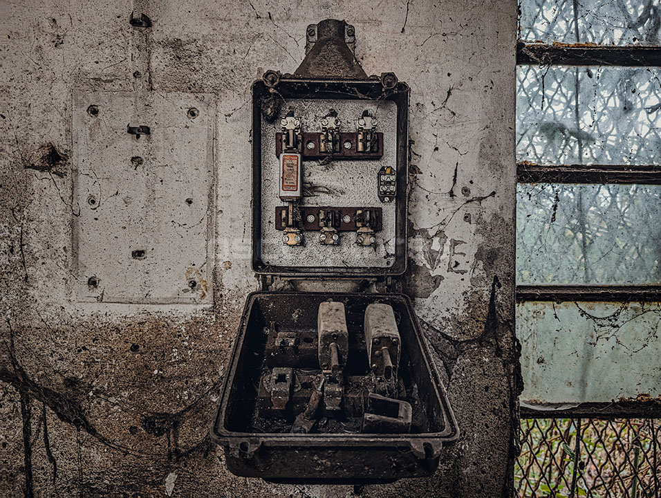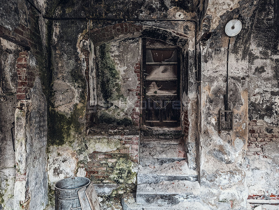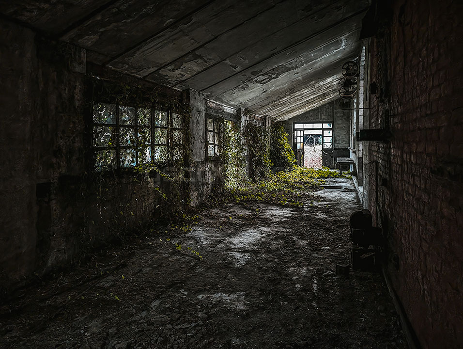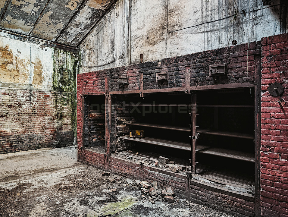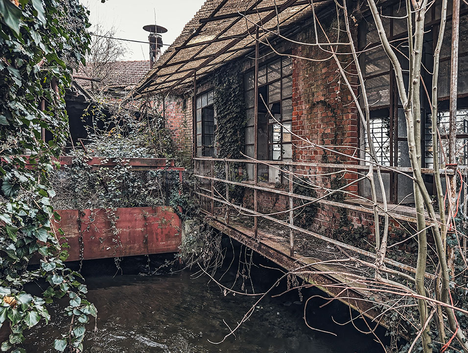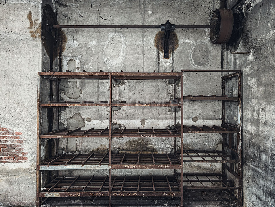 A horizontal water mill powered this old factory. The mill (which is still intact) is currently covered in a thick layer of mud. Although principally water powered, at some stage the factory was modernized and received electrical power. Conveyer belts and gears are scattered throughout the factory, most probably powering the old (and now non existent) machinery. Only a green silo remains, ominously guarding the room it stays in. During the explore, no documents or anything really could be found. Only a few tables and signs.