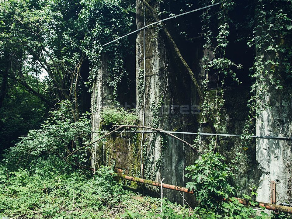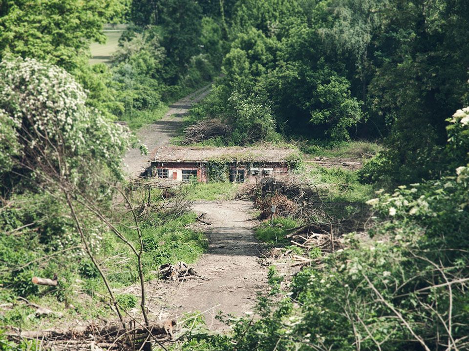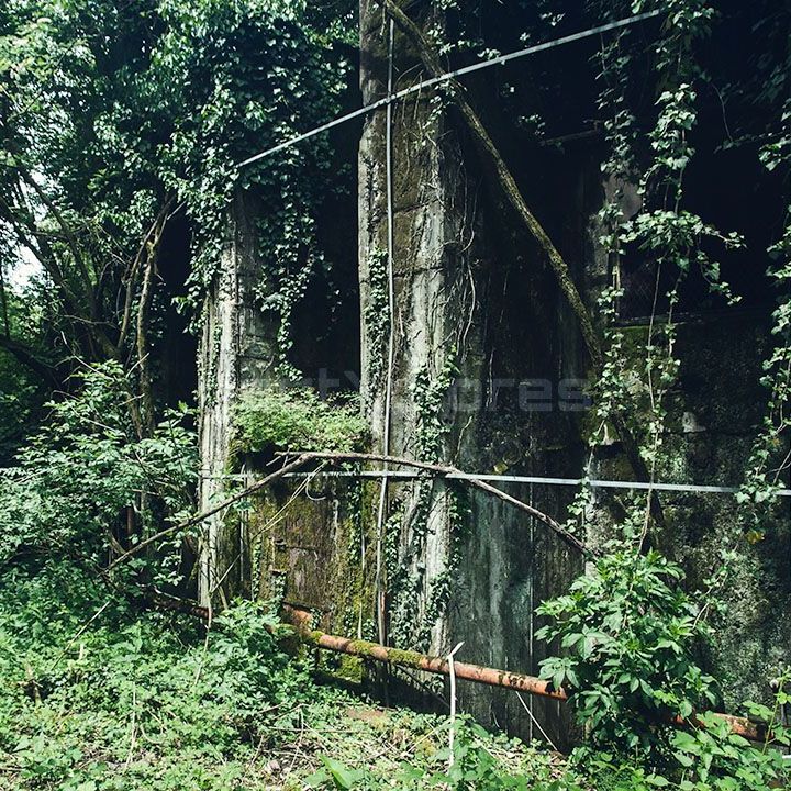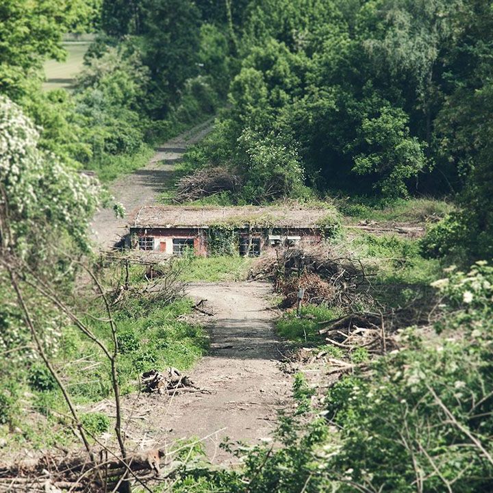 The military structures in the area, built between 1936 and 1937, were used as fuel depots during World War II, making them a significant target during the conflict. Remarkably, these facilities survived the war largely unscathed. The site is divided into two zones, separated by a now-defunct railway line that was once used for transporting fuel: the service area and the large tank section. The latter sits on a hill, surrounded by dense woodland that makes access challenging.