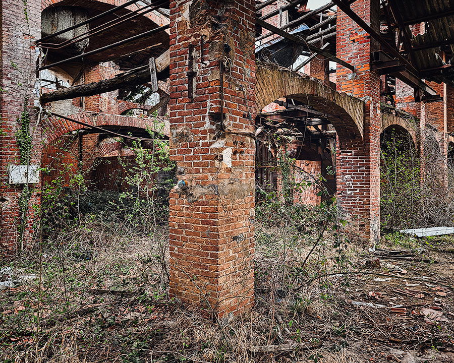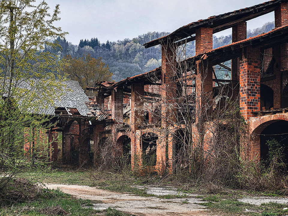 Nestled in a quaint Italian town are the remnants of an old brick furnace, a once-thriving industrial hub now reduced to crumbling walls and whispers of history.