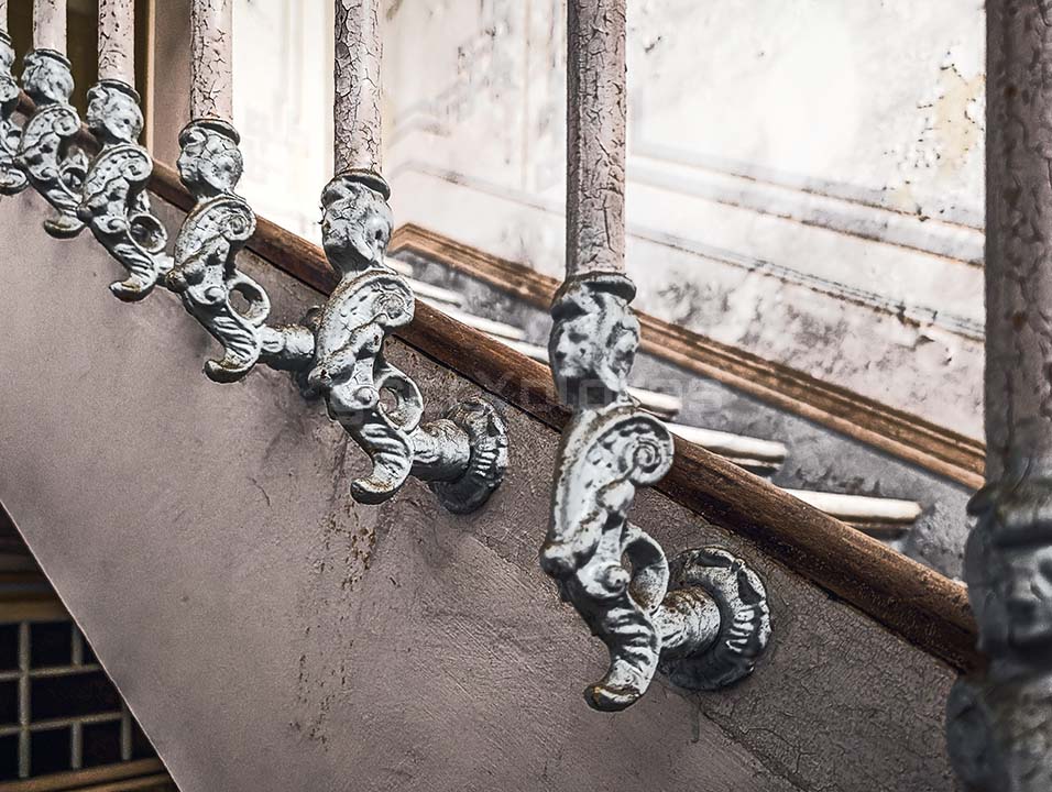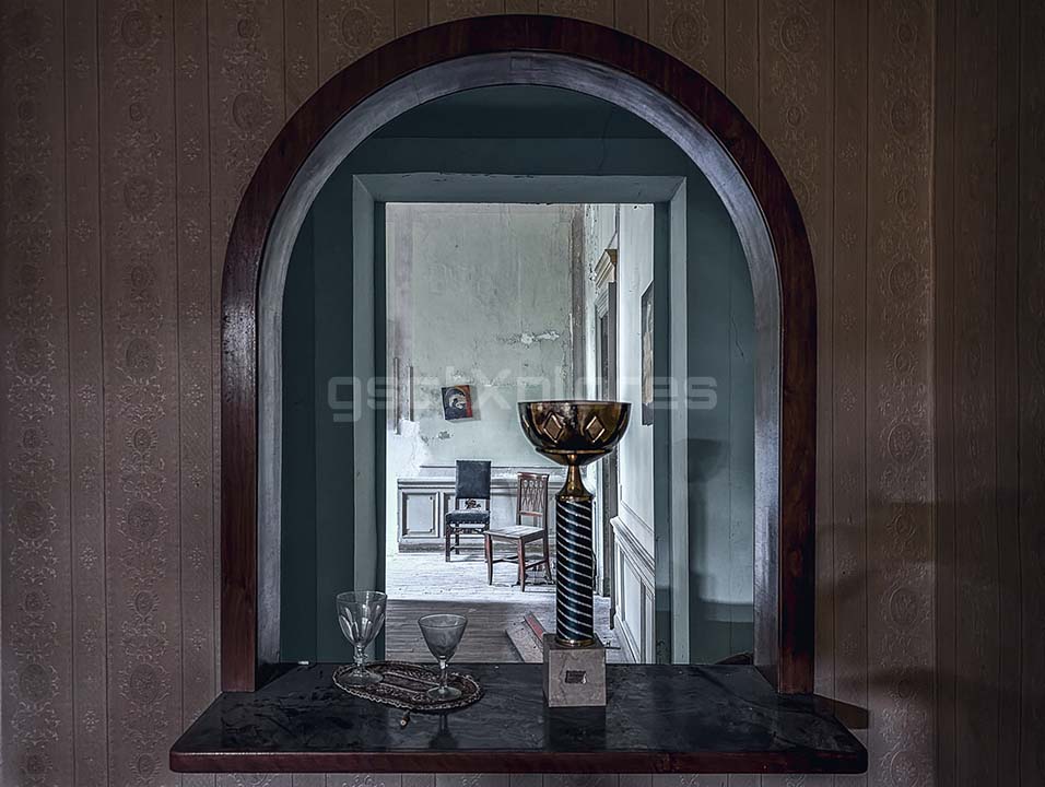 This historic villa, a majestic building constructed in 1851 was designed by architect Sada in the style of elegant sixteenth-century architecture. It was first owned by Count Cesare Renato Virago. It features two main architectural orders: Doric and Composite, which essentially shape its decorative elements. A grand stone staircase with two ramps leads to the main entrance. Inside, guests were struck by the grandeur and richness of the decorative details. The spacious entrance hall is entirely adorned with exquisite stuccoes and frescoes, while the central salon, with its 6-meter-high ceilings, is the heart of the residence. It was once used for ceremonies and dances, but today, the crumbling stuccoes on the ceiling and walls give only a small idea of the long gone splendor. In the (not so distant) past hung a majestic Empire-style crystal chandelier, which apparently has been sold to an American client. Locals informed me that even though some of the villa’s belongings were sold, how they were acquired, and who acquired them is unfortunately presumed to be quite shady.