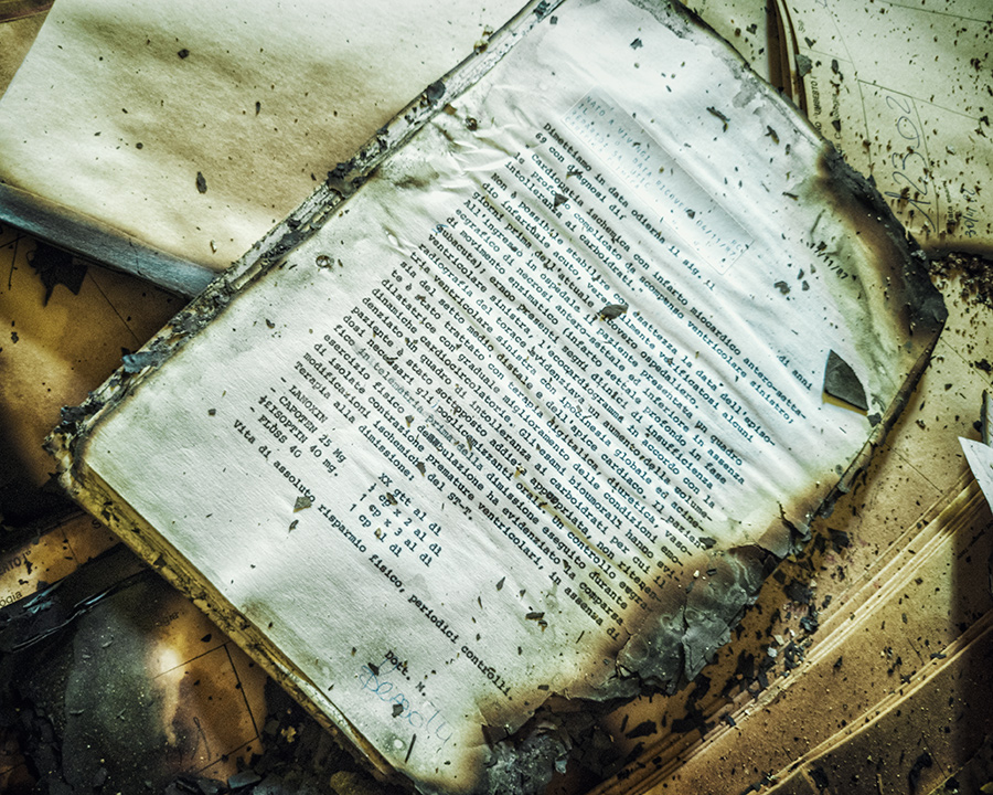 During the exploration of this castle, numerous medical reports from a major local hospital were found. Both inside and outside the building, the documents, complete with patients’ names and other personal data, were piled up and burned. Was this an act of vandalism, or something else?
